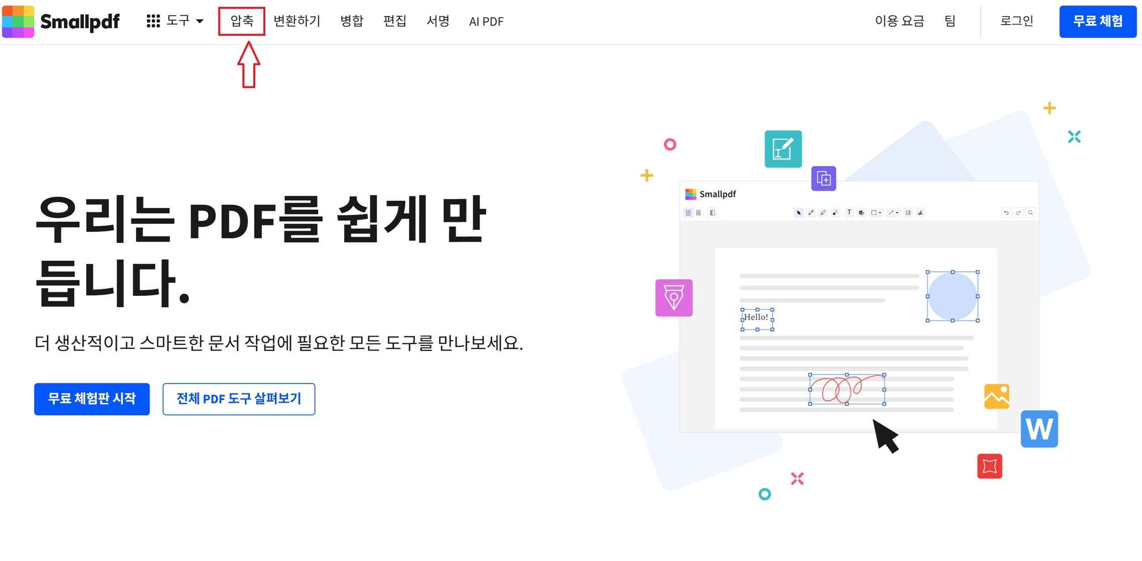Smallpdf는 PDF 파일 변환·압축·편집 등 20가지 이상의 기능을 무료로 사용할 수 있습니다.