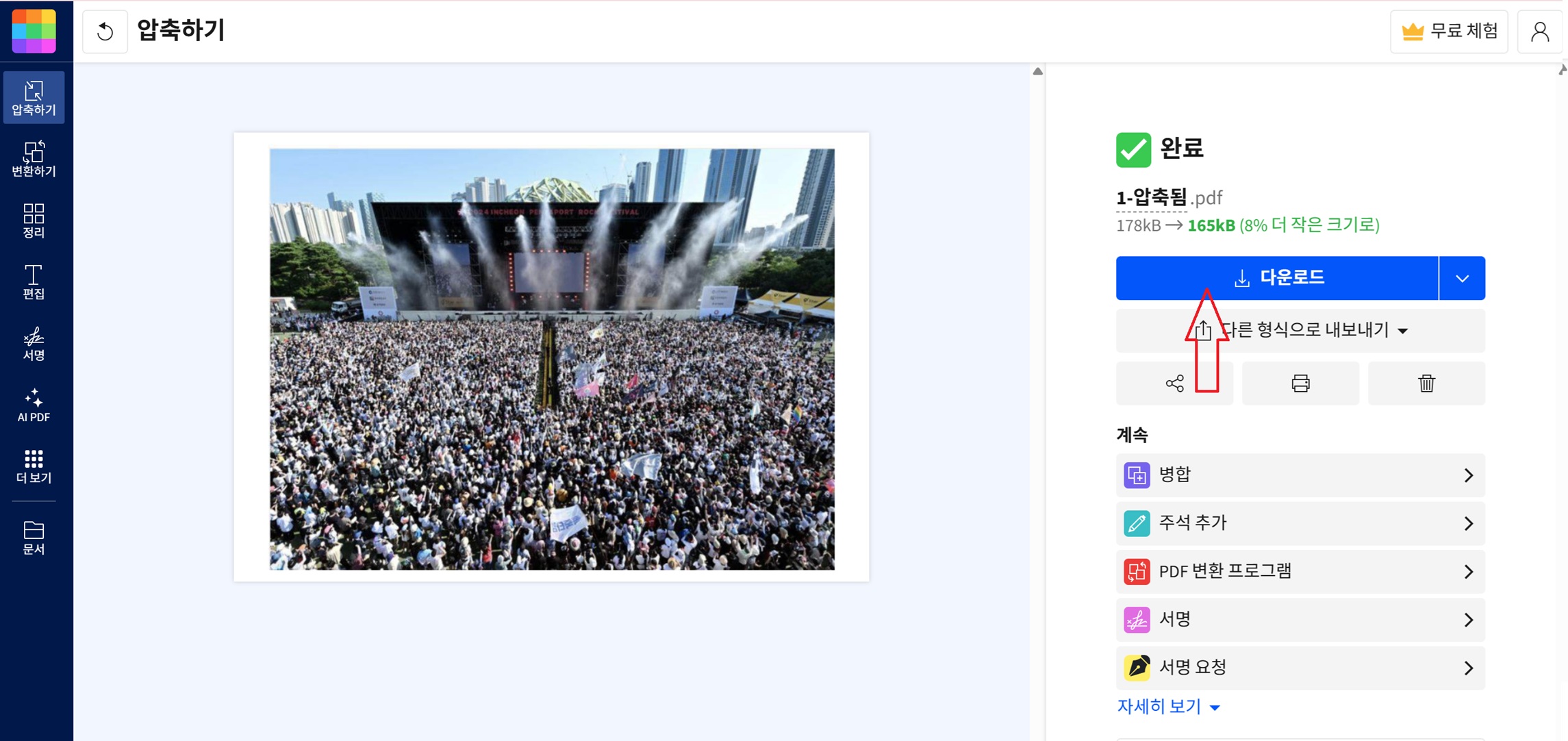 특히 PDF 압축 기능은 처리 속도가 빨라서 전혀 불편함 없이 사용할 수 있었고,